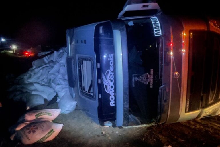 Em Lagarto, caminhão tomba na SE-170 e motorista fica ferido