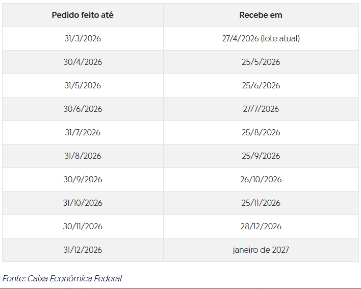 O pagamento depende da data em que o pedido foi feito.