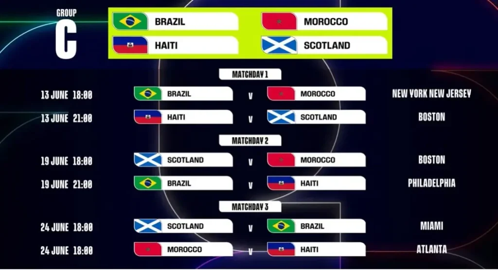 Na segunda rodada, o Brasil volta a campo no dia 19 de junho, quando encara o Haiti no Lincoln Financial Field, na Filadélfia, às 22h (horário de Brasília). Já o encerramento da primeira fase está marcado para o dia 24 de junho, contra a Escócia, no Hard Rock Stadium, em Miami, também às 19h (horário de Brasília).